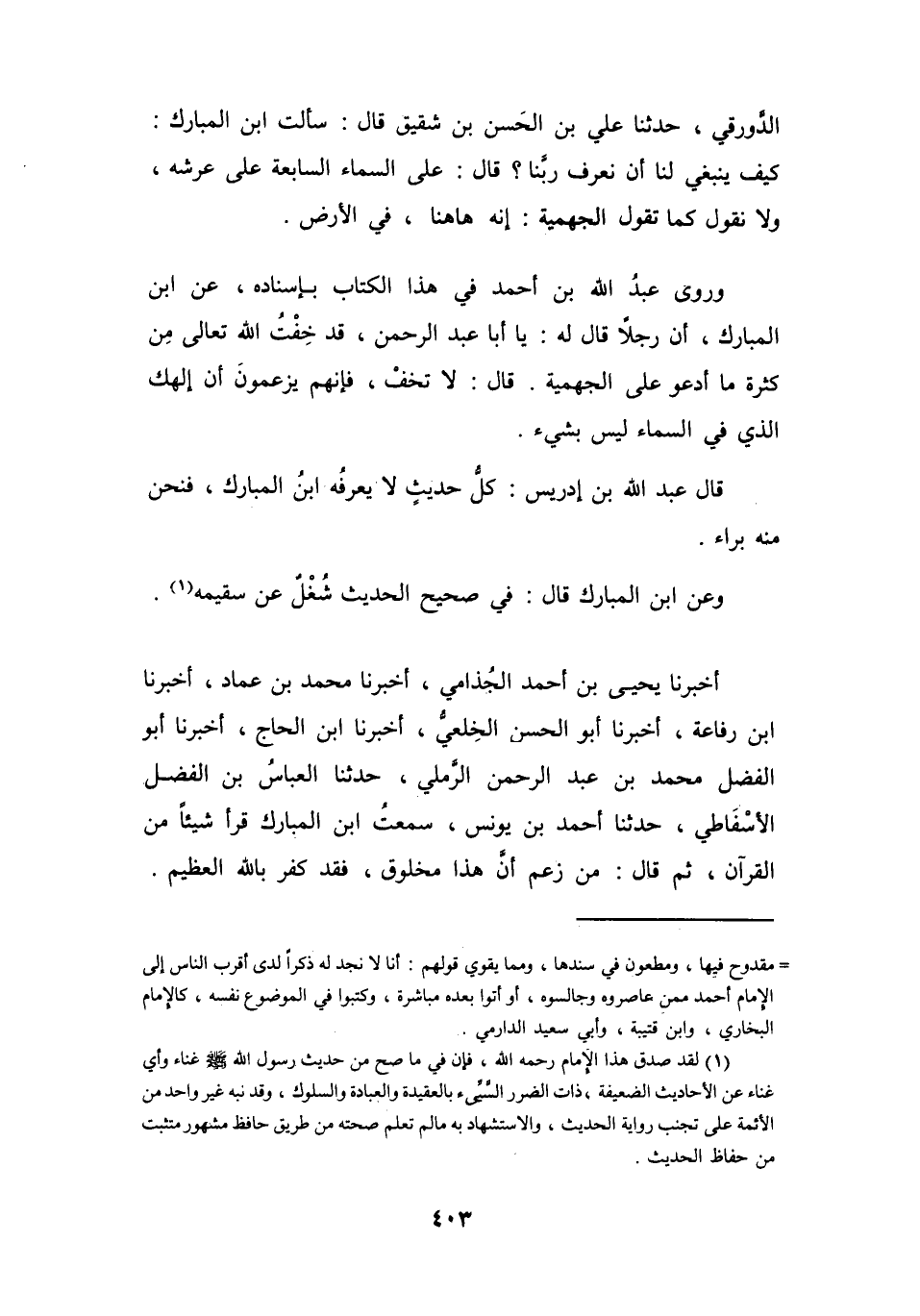 وَرَوَى: عَبْدُ اللهِ بنُ أَحْمَدَ فِي هَذَا الكِتَاب بِإِسْنَادِهِ، عَنِ ابْنِ المُبَارَكِ: