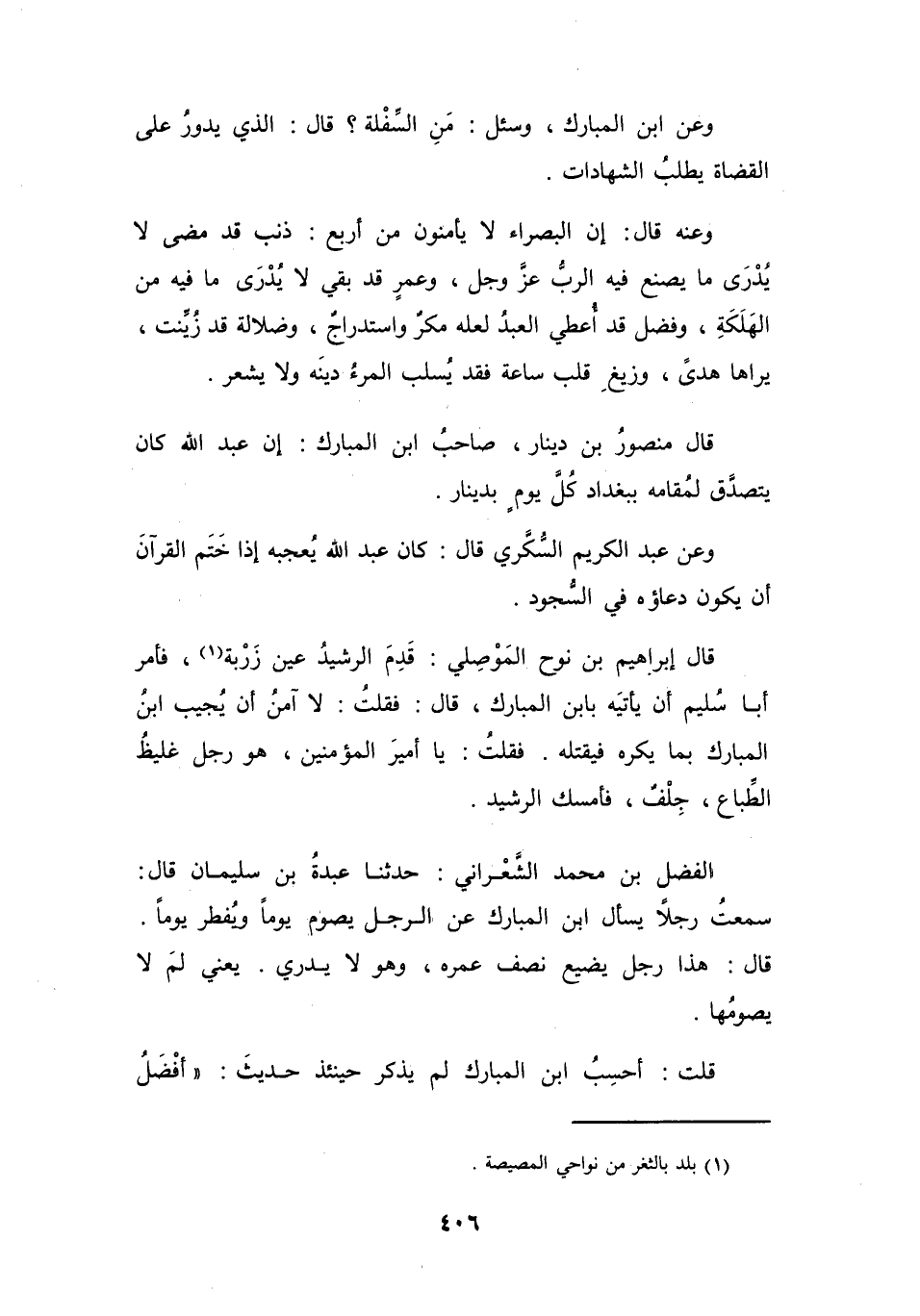 وَعَنِ ابْنِ المُبَارَكِ، وَسُئِلَ: مَنِ السِّفْلَةُ؟