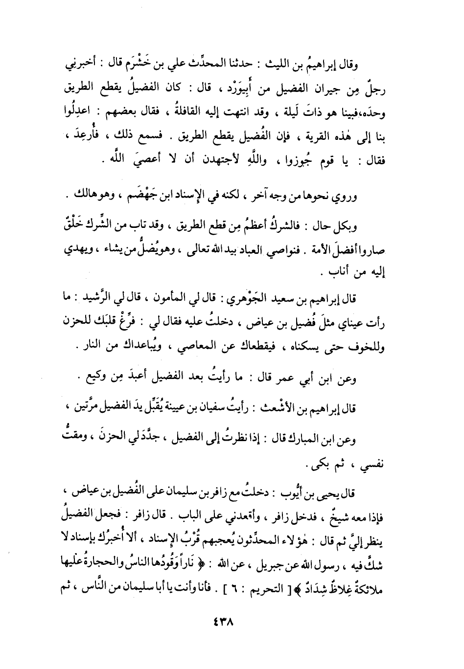 مَا رَأتْ عَيْنَايَ مِثْلَ فُضَيْلِ بنِ عِيَاضٍ، دَخَلْتُ عَلَيْهِ.