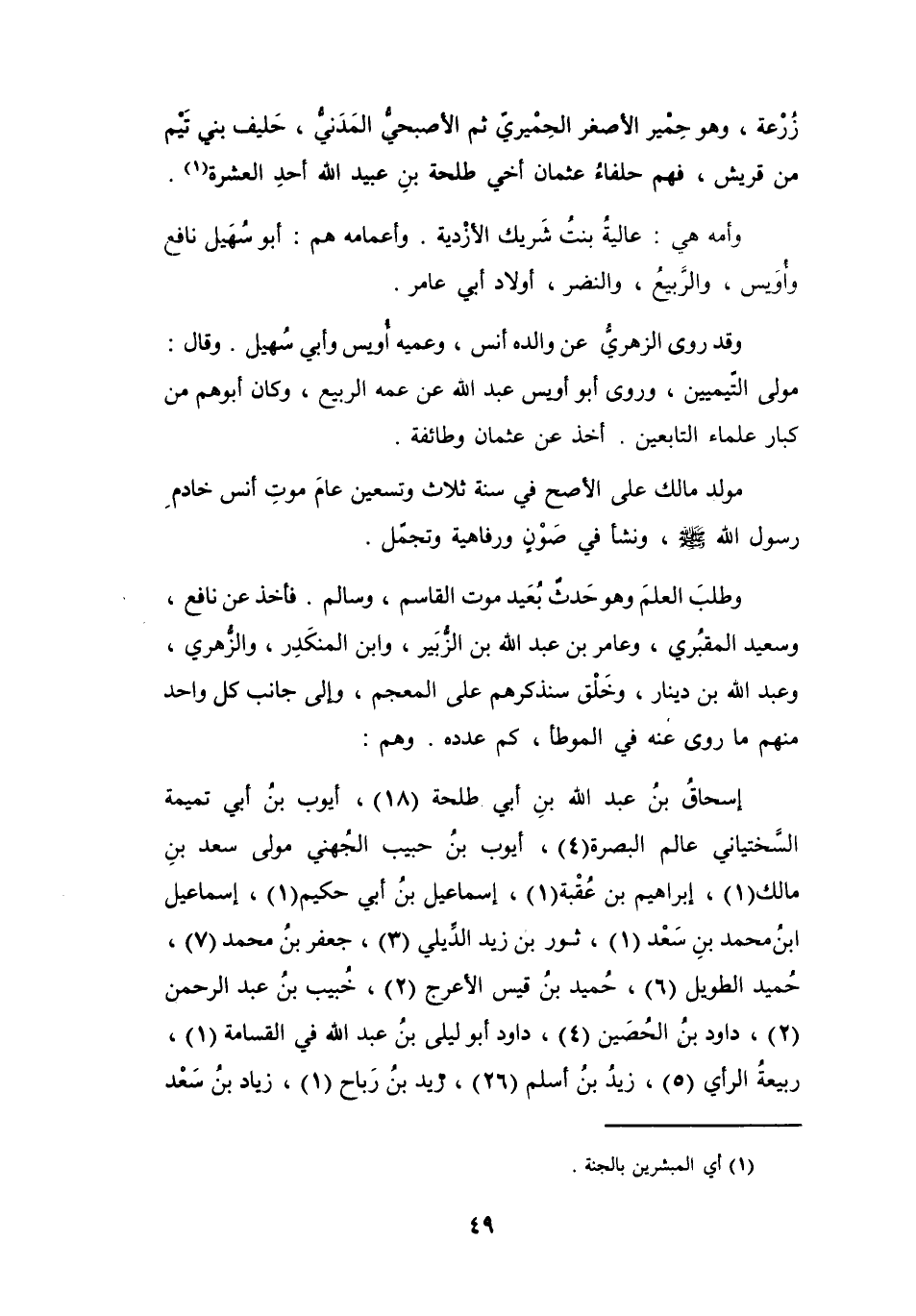 إِسْحَاقُ بنُ عَبْدِ اللهِ بنِ أَبِي طَلْحَةَ (18) ، أَيُّوْبُ بنُ أَبِي تَمِيْمَةَ السِّخْتِيَانِيُّ عَالِمُ البَصْرَةِ (4) ، أَيُّوْبُ بنُ حَبِيْبٍ الجُهَنِيُّ مَوْلَى سَعْدِ بنِ مَالِكٍ (1) ، إِبْرَاهِيْمُ بنُ عُقْبَةَ (1) ، إِسْمَاعِيْلُ بنُ أَبِي حَكِيْمٍ (1) ، إِسْمَاعِيْلُ بنُ مُحَمَّدِ بنِ سَعْدٍ (1) ، ثَوْرُ بنُ زَيْدٍ الدِّيْلِيُّ (3) ، جَعْفَرُ بنُ مُحَمَّدٍ (7) ، حُمَيْدٌ الطَّوِيْلُ (6) ، حُمَيْدُ بنُ قَيْسٍ الأَعْرَجُ (2) ، خُبَيْبُ بنُ عَبْدِ الرَّحْمَنِ (2) ، دَاوُدُ بنُ الحُصَيْنِ (4) ، دَاوُدُ أَبُو لَيْلَى بنُ عَبْدِ اللهِ فِي القِسَامَةِ (1) ، رَبِيْعَةُ الرَّأْيُ (5) ، زَيْدُ بنُ أَسْلَمَ (26) (26) ، زَيْدُ بنُ رَبَاحٍ (1) ، زِيَادُ بنُ سَعْدٍ (1) ،