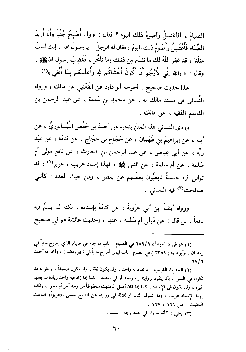 (1) هو في " الموطأ " 1 / 289 في الصيام: باب ما جاء في صيام الذي يصبح جنبا في رمضان، وأبو داود (2389) في الصوم: باب فيمن أصبح جنبا في شهر رمضان، وأخرجه أحمد 6 / 67.
