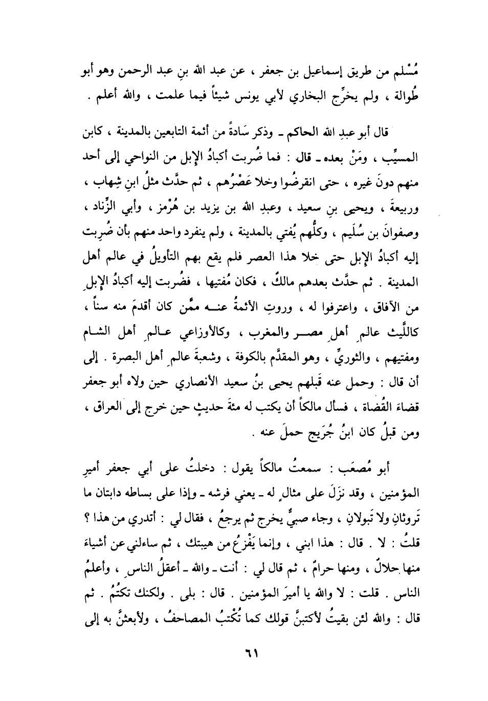 قَالَ أَبُو عَبْدِ اللهِ الحَاكِمُ - وَذَكَرَ سَادَةً مِنْ أَئِمَّةِ التَّابِعِيْنَ بِالمَدِيْنَةِ، كَابْنِ المُسَيِّبِ، وَمَنْ بَعْدَهُ - قَالَ: فَمَا ضُرِبَتْ أَكبَادُ الإِبلِ مِنَ النَّوَاحِي إِلَى أَحَدٍ مِنْهُم دُوْنَ غَيْرِهِ، حَتَّى انْقَرَضُوا، وَخلاَ عصرُهُم، ثُمَّ حَدَّث مِثْلُ ابْنِ شِهَابٍ، وَرَبِيْعَةَ، وَيَحْيَى بنِ سَعِيْدٍ، وَعَبْدِ اللهِ بنِ يَزِيْدَ بنِ هُرْمُزَ، وَأَبِي الزِّنَادِ، وَصَفْوَانَ بنِ سُلَيْمٍ، وَكُلُّهُم يُفْتِي بِالمَدِيْنَةِ، وَلَمْ يَنْفَرِدْ وَاحِدٌ مِنْهُم بِأَنْ ضُرِبَتْ إِلَيْهِ أَكبَادَ الإِبِلِ، حَتَّى خَلاَ هَذَا العَصْرُ، فَلَمْ يَقعْ بِهِمُ التَّأْوِيْلُ فِي عَالِمِ أَهْلِ المَدِيْنَةِ.