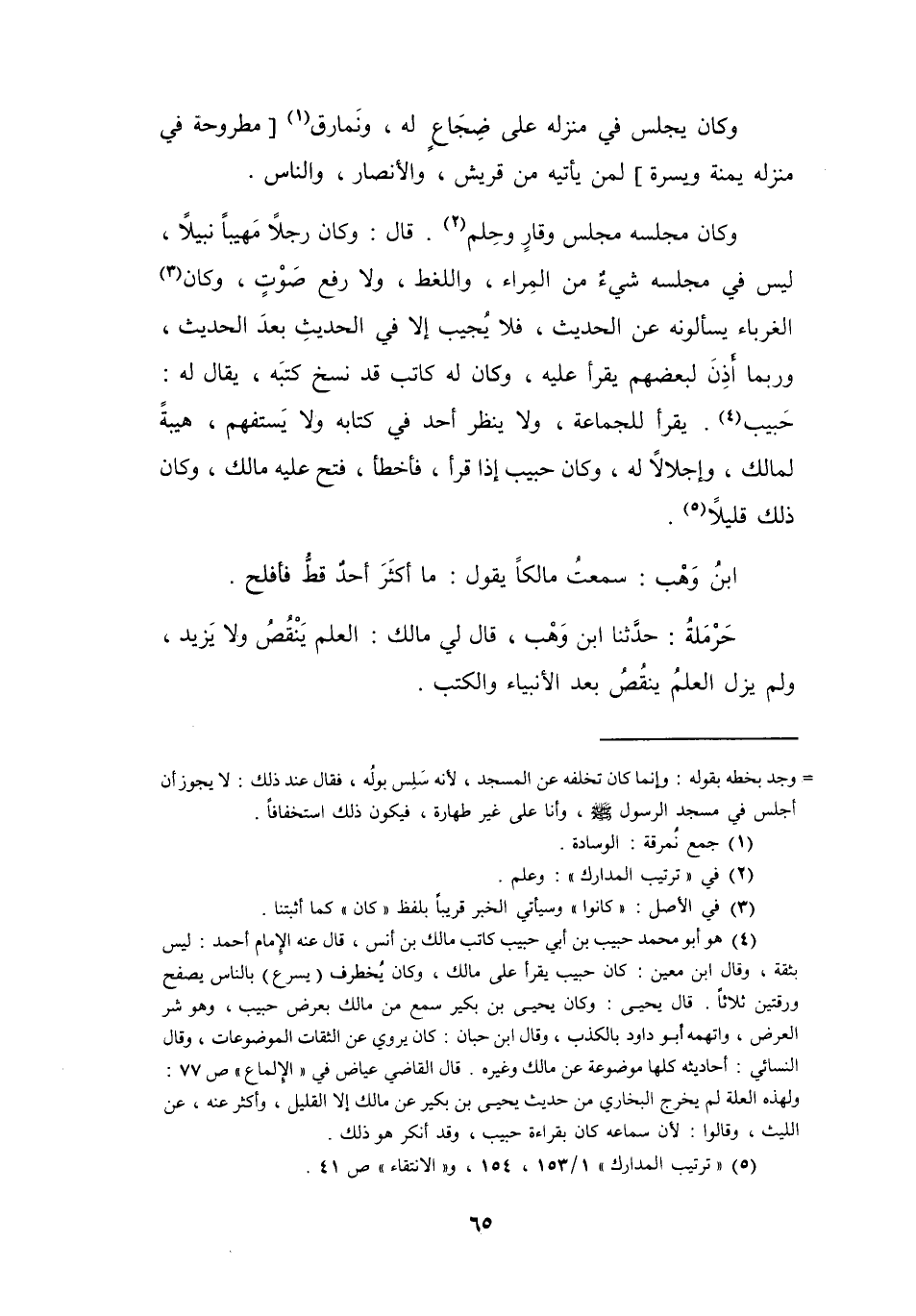 (4) هو أبو محمد حبيب بن أبي حبيب كاتب مالك بن أنس، قال عنه الامام أحمد: ليس بثقة، وقال ابن معين: كان حبيب يقرأ على مالك، وكان يخطرف (يسرع) بالناس يصفح ورقتين ثلاثا.