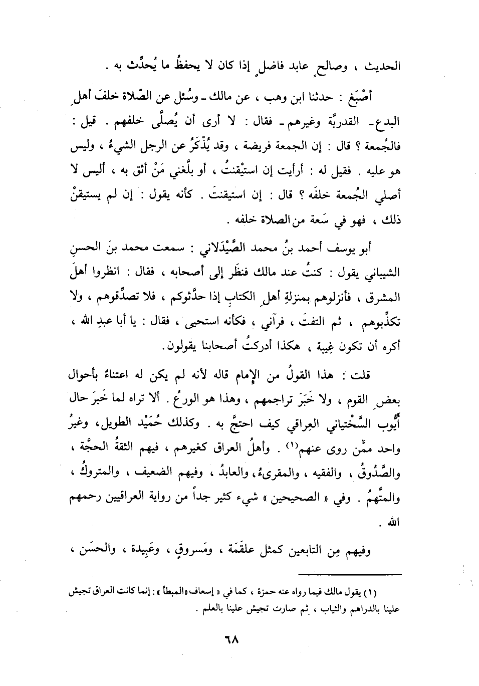 وَأَهْلُ العِرَاقِ كَغَيْرِهِم، فِيْهِمُ الثِّقَةُ الحُجَّةُ، وَالصَّدُوقُ، وَالفَقِيْهُ، وَالمُقْرِئُ، وَالعَابِدُ، وَفِيْهِمُ الضَّعِيْفُ، وَالمَتْرُوكُ، وَالمُتَّهَمُ، وَفِي (الصَّحِيْحَيْنِ) شَيْءٌ كَثِيْرٌ جِدّاً مِنْ رِوَايَةِ العِرَاقِيِّينَ - رَحِمَهُمُ اللهُ -.