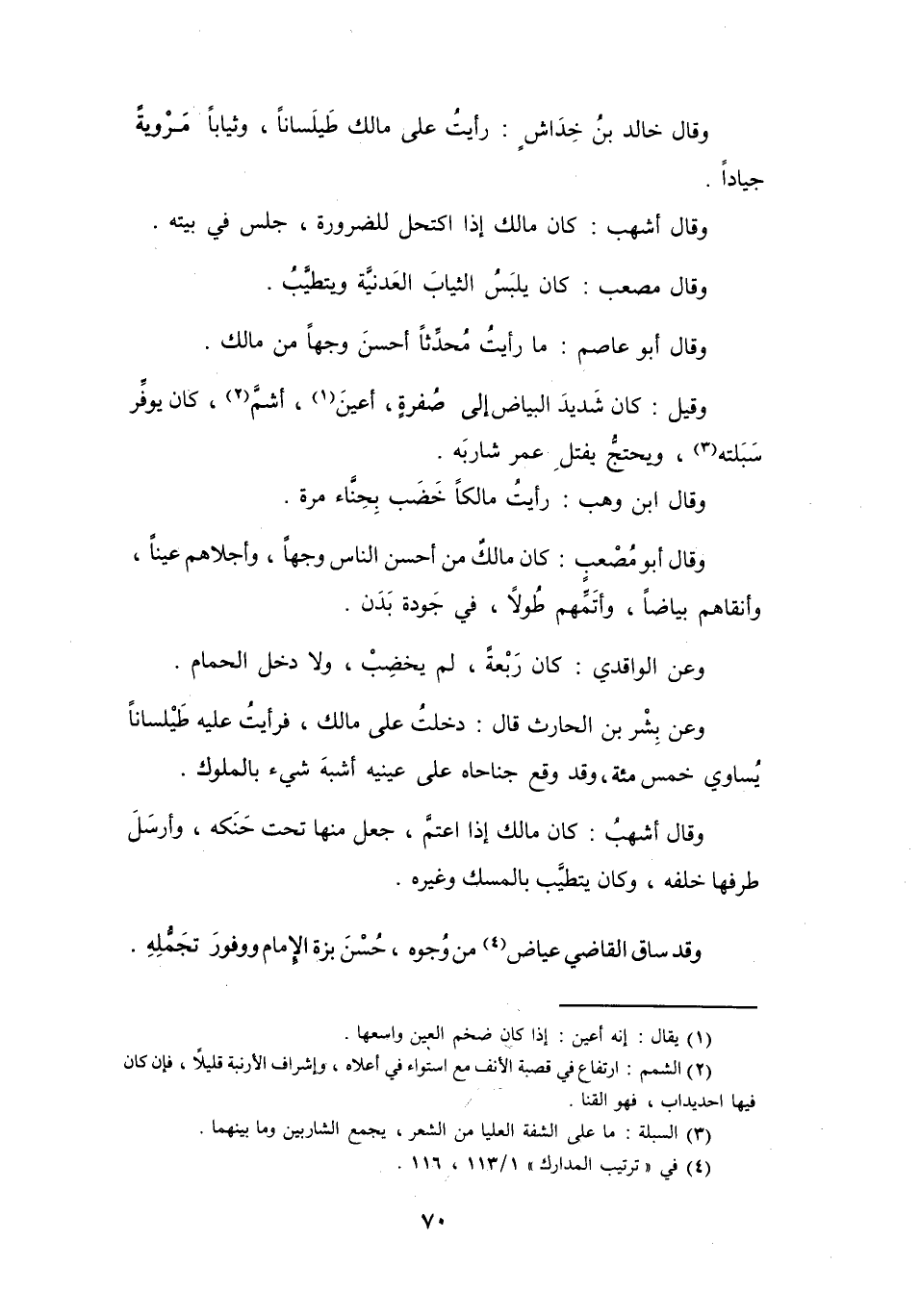 وَقَدْ سَاقَ القَاضِي عِيَاضٌ (4) مِنْ وُجُوْهٍ: حُسْنَ بَزَّةِ الإِمَامِ وَوُفُورَ تَجَمُّلِهِ.
