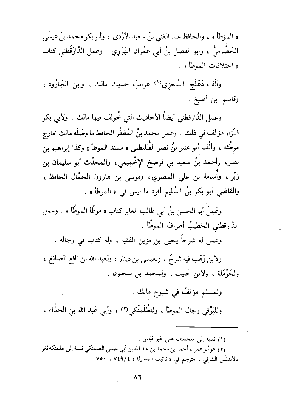 وَللبَرْقِيِّ (رِجَالُ المُوَطَّأِ) ، وَلِلطَّلَمَنْكِيِّ (2) ، وَأَبِي عَبْدِ اللهِ بنِ الحَذَّاءِ،