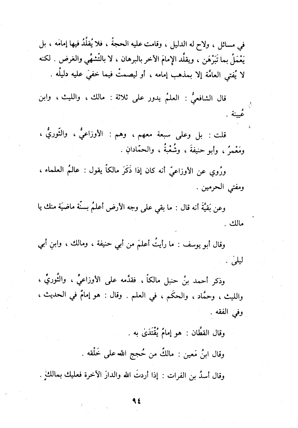 قَالَ الشَّافِعِيُّ: العِلْمُ يَدُوْرُ عَلَى ثَلاَثَةٍ: مَالِكٍ، وَاللَّيْثِ، وَابْنِ عُيَيْنَةَ.