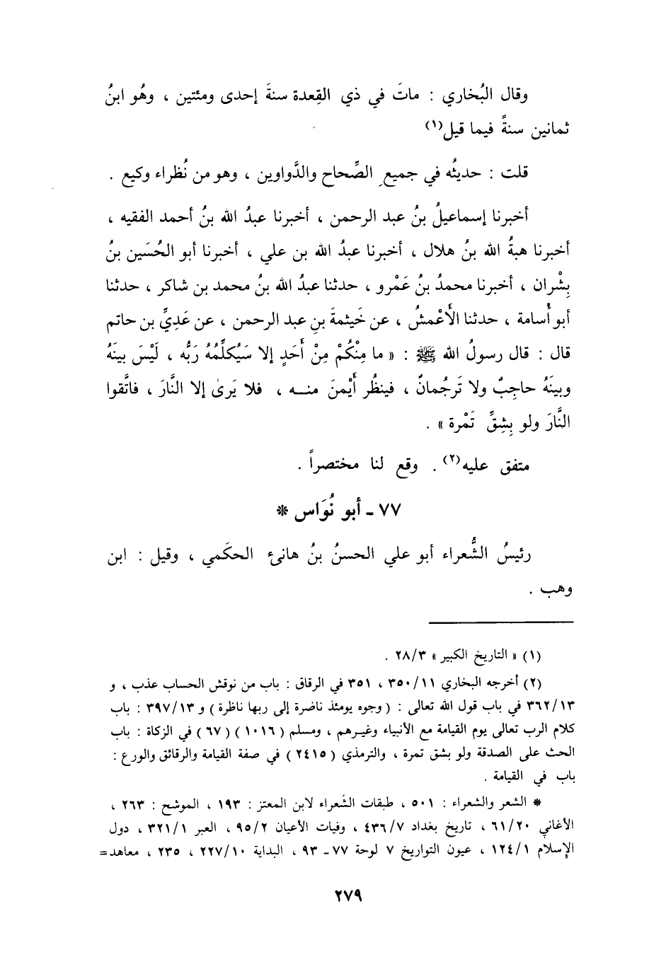 77 - أَبُو نُوَاسٍ أَبُو عَلِيٍّ الحَسَنُ بنُ هَانِىء الحِكَمِيُّ *