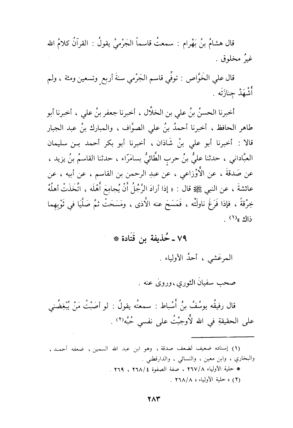 (2) " حليلة الأولياء " 8 / 268.