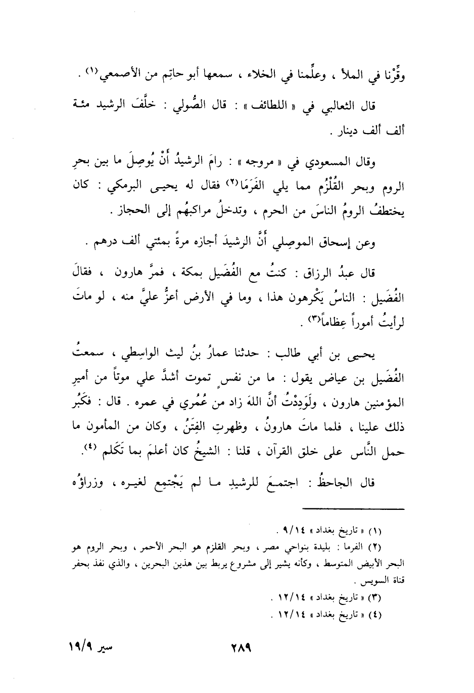 (1) " تاريخ بغداد " 14 / 9.