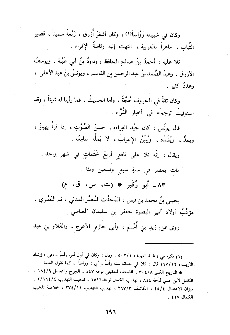 83 - أَبُو زُكَيْرٍ يَحْيَى بنُ مُحَمَّدِ بنِ قَيْسٍ المَدَنِيُّ * (ت، س، ق، م)