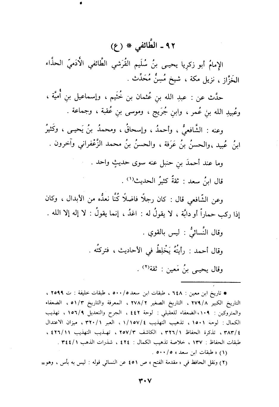 92 - الطَّائِفِيُّ أَبُو زَكَرِيَّا يَحْيَى بنُ سُلَيْمٍ القُرَشِيُّ * (ع)