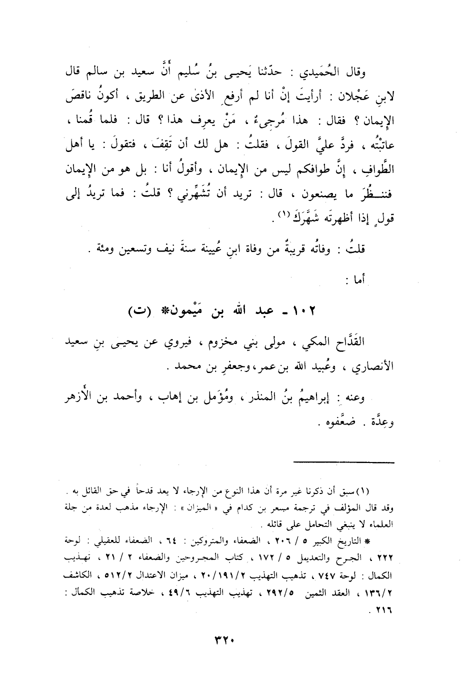 وقد قال المؤلف في ترجمة مسعر بن كدام في " الميزان ": الارجاء مذهب العدة من جلة العلماء لا ينبغي التحامل على قائله.