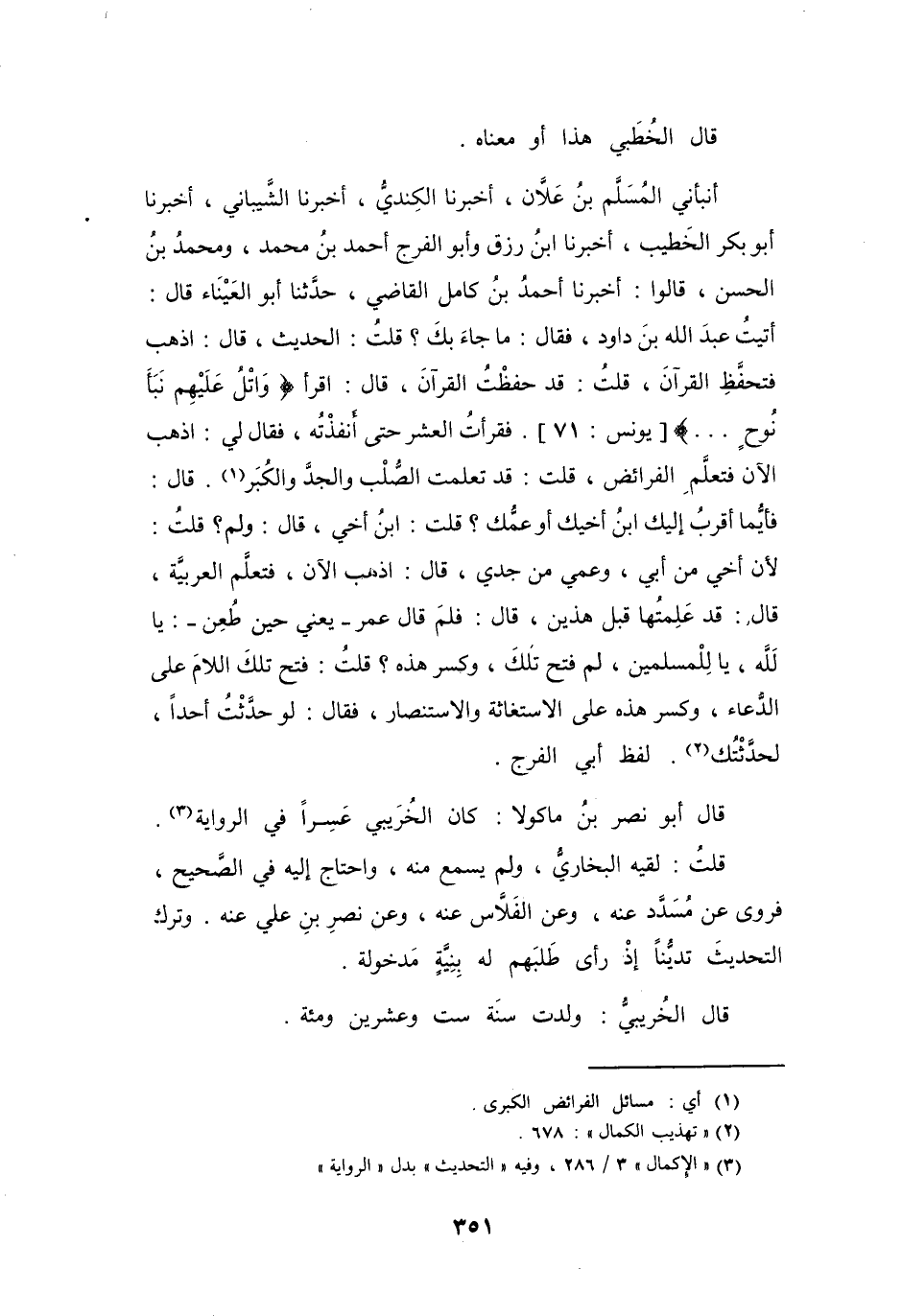 (3) " الإكمال " 3 / 286، وفيه " التحديث " بدل " الرواية "
