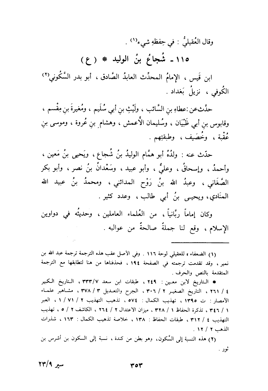115 - شُجَاعُ بنُ الوَلِيْدِ بنِ قَيْسٍ السَّكُوْنِيُّ * (ع)