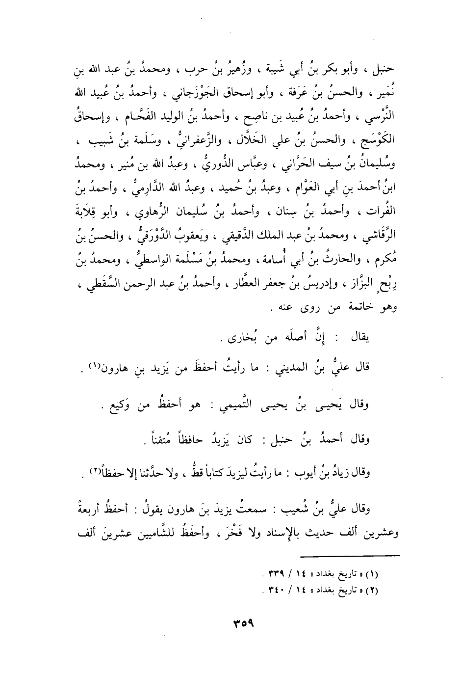 قَالَ عَلِيُّ بنُ المَدِيْنِيِّ: مَا رَأَيْتُ أَحْفَظَ مَنْ يَزِيْدَ بنِ هَارُوْنَ (1) .