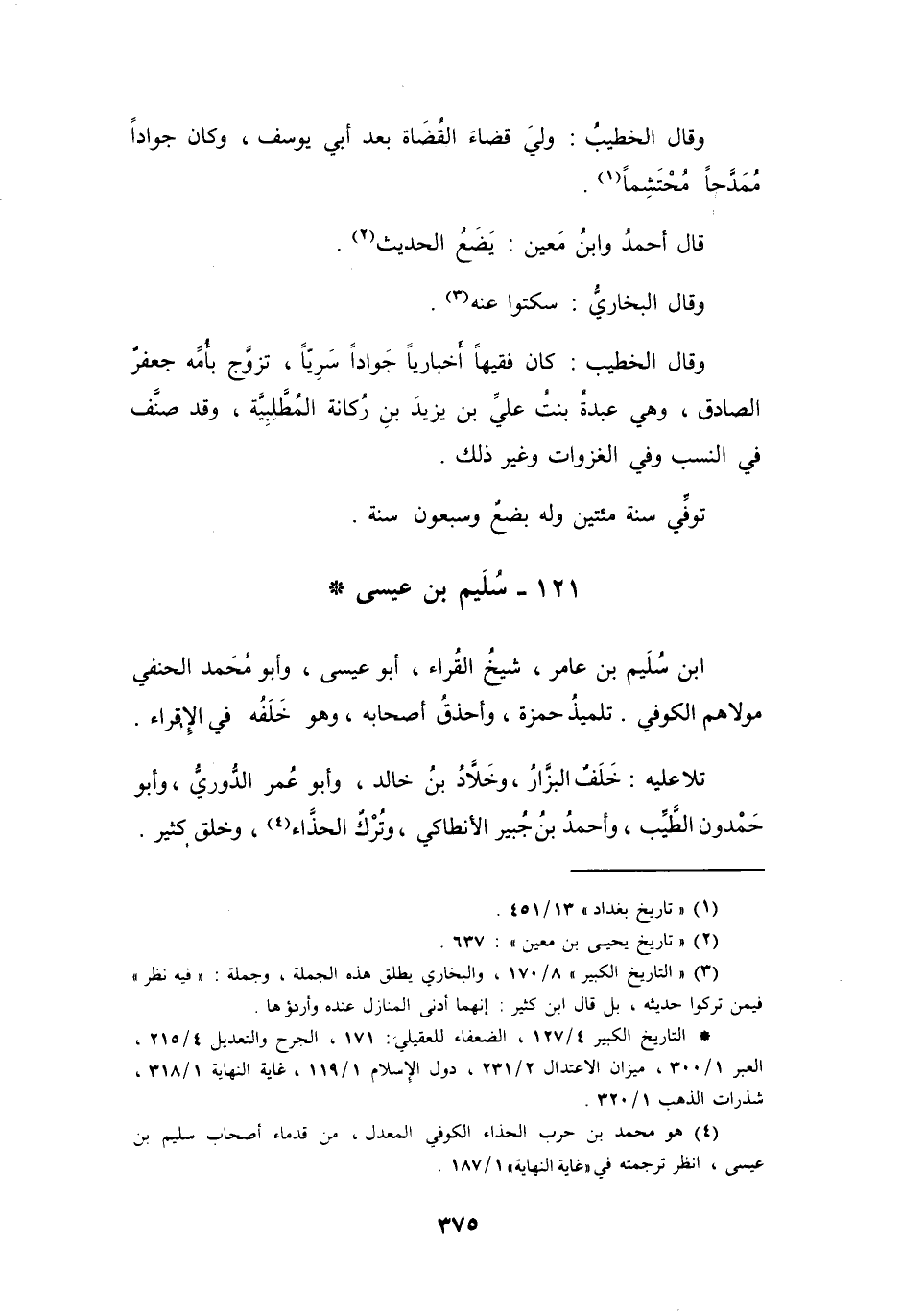 121 - سُلَيْمُ بنُ عِيْسَى بنِ سُلَيْمِ بنِ عَامِرٍ الحَنَفِيُّ مَوْلاَهُمْ