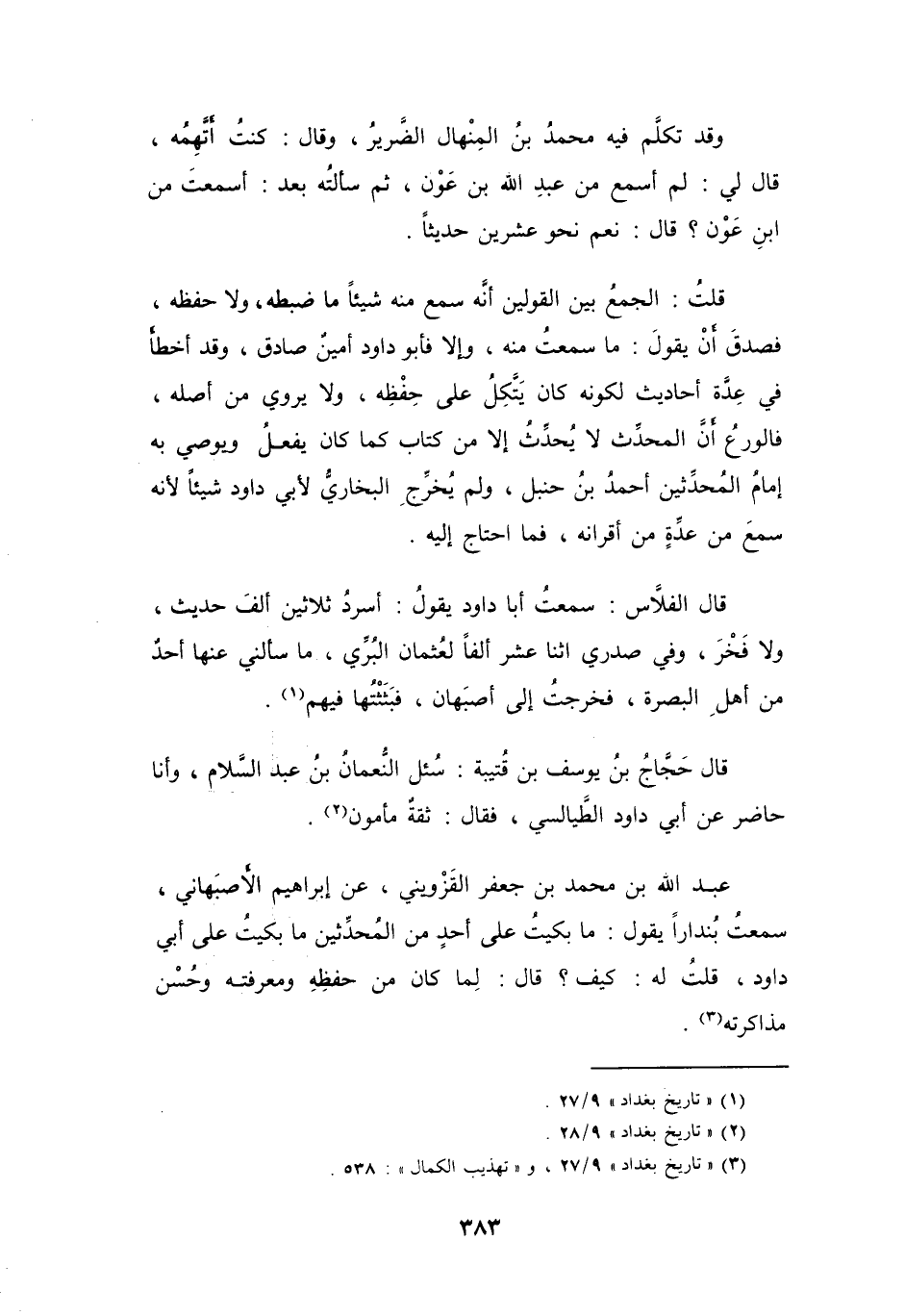 (3) " تاريخ بغداد " 9 / 27، و" تهذيب الكمال ": 538.