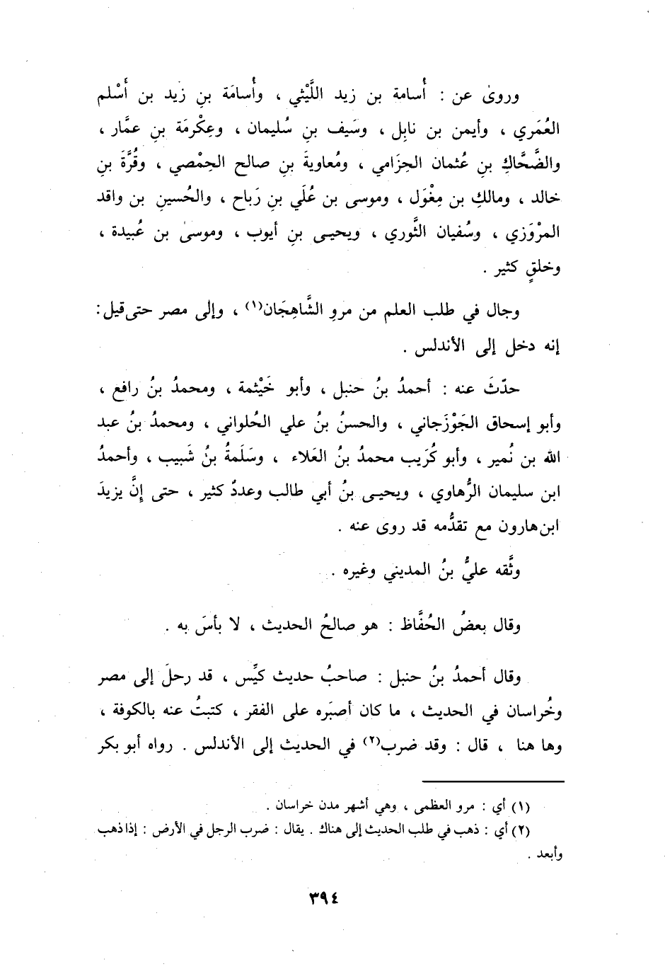 وَجَالَ فِي طَلَبِ العِلْمِ مِنْ مَرْوَ الشَّاهِجَانِ (1) ، وَإِلَى مِصْرَ، حَتَّى قِيْلَ: إِنَّهُ دَخَلَ إِلَى الأَنْدَلُسِ.