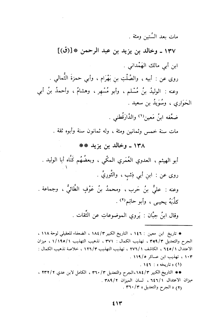 137 - خَالِدُ بنُ يَزِيْدَ بنِ عَبْدِ الرَّحْمَنِ بنِ أَبِي مَالِكٍ الهَمْدَانِيُّ * (ق)