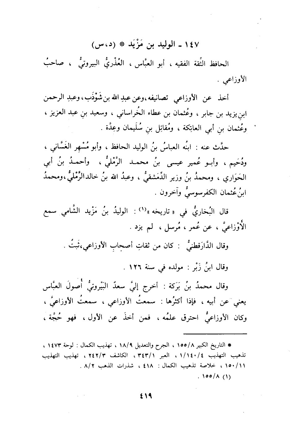 147 - الوَلِيْدُ بنُ مَزْيَدٍ أَبُو العَبَّاسِ العُذْرِيُّ * (د، س)
