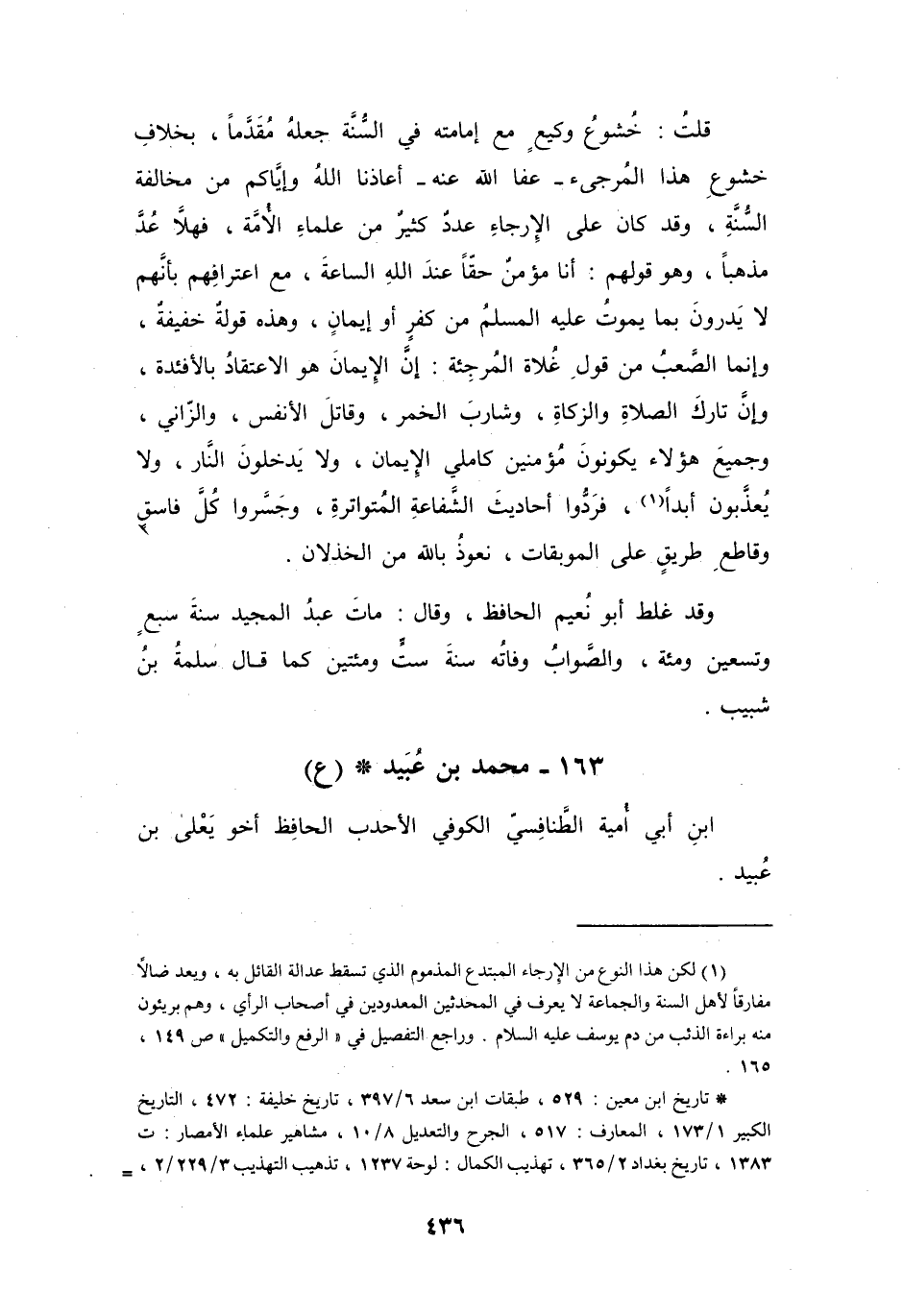 (1) لكن هذا النوع من الارجاء المبتدع المذموم الذي تسقط عدالة القائل به، ويعد ضالا مفارقا لاهل السنة والجماعة لا يعرف في المحدثين المعدودين في أصحاب الرأي، وهم بريئون منه براءة الذئب من دم يوسف عليه السلام.
