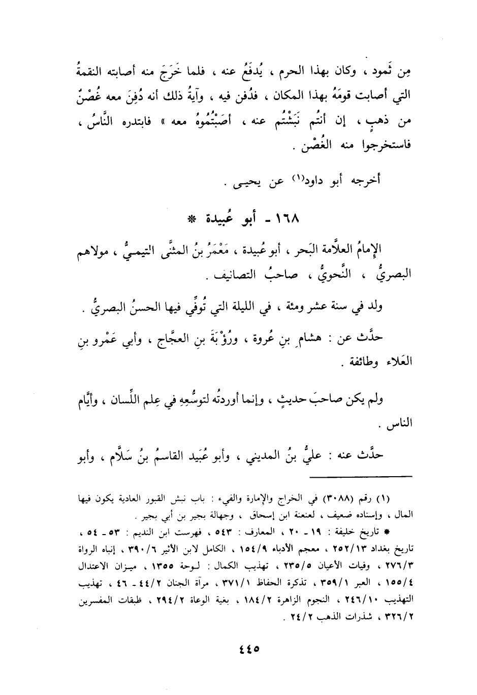 168 - أَبُو عُبَيْدَةَ مَعْمَرُ بنُ المُثَنَّى التَّيْمِيُّ مَوْلاَهُمْ *