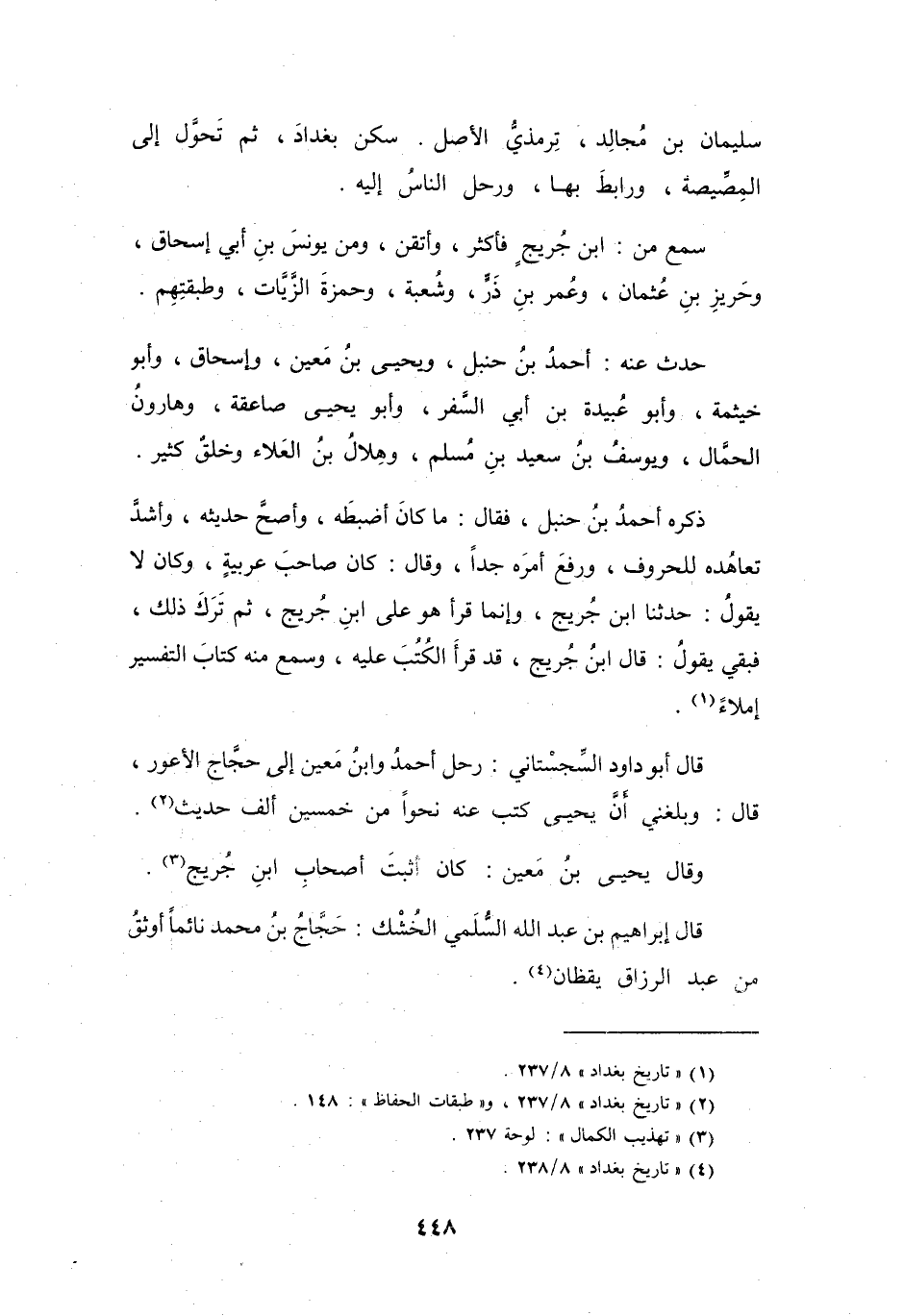 (2) " تاريخ بغداد " 8 / 237، و" طبقات الحفاظ ": 148.