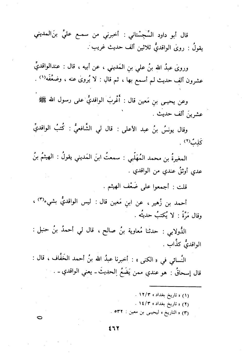 أَحْمَدُ بنُ زُهَيْرٍ: عَنِ ابْنِ مَعِيْنٍ، قَالَ: لَيْسَ الوَاقِدِيُّ بِشَيْءٍ (3) .