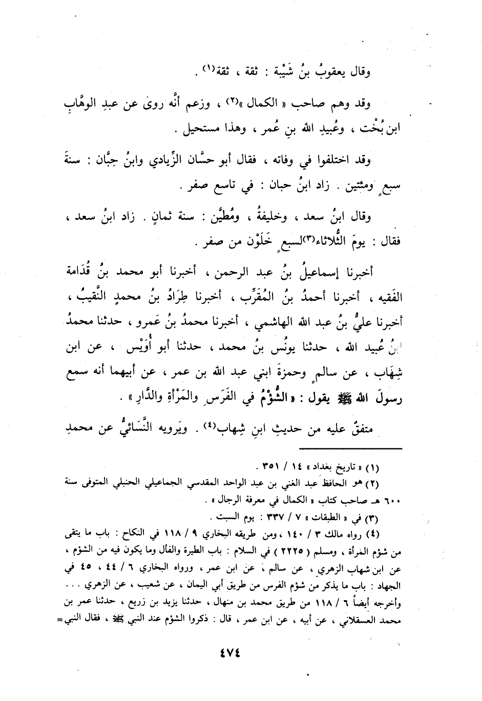 (2) هو الحافظ عبد الغني بن عبد الواحد المقدسي الجماعيلي الحنبلي المتوفي سنة 600 هـ صاحب كتاب " الكمال في معرفة الرجال ".