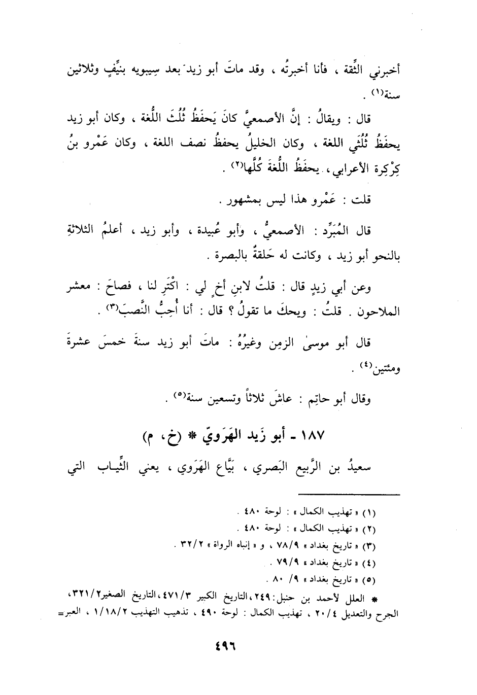 187 - أَبُو زَيْدٍ الهَرَوِيُّ سَعِيْدُ بنُ الرَّبِيْعِ * (خَ، م)