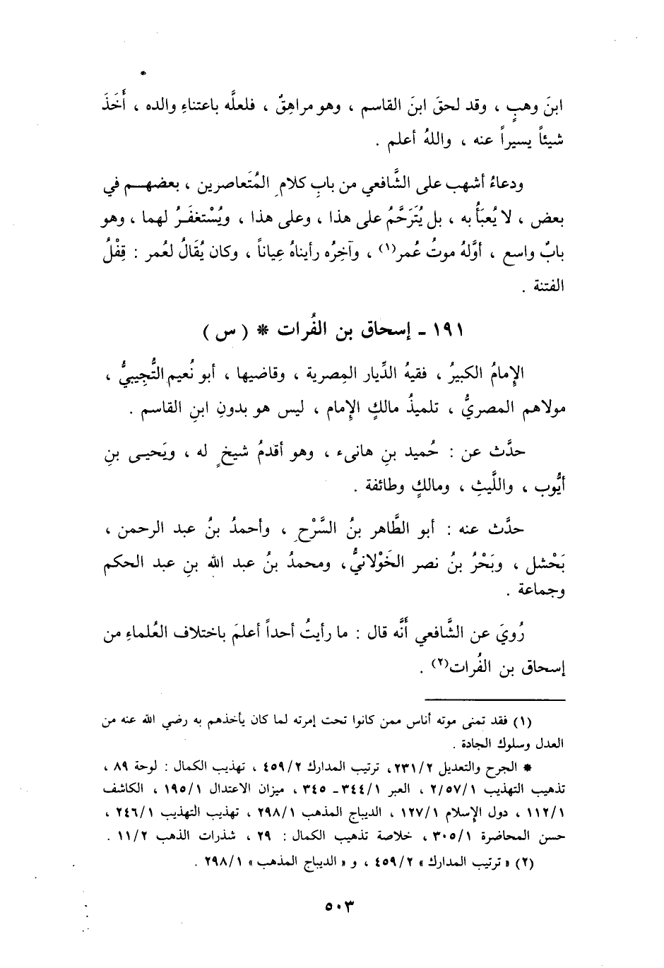 191 - إِسْحَاقُ بنُ الفُرَاتِ أَبُو نُعَيْمٍ التُّجِيْبِيُّ * (س)