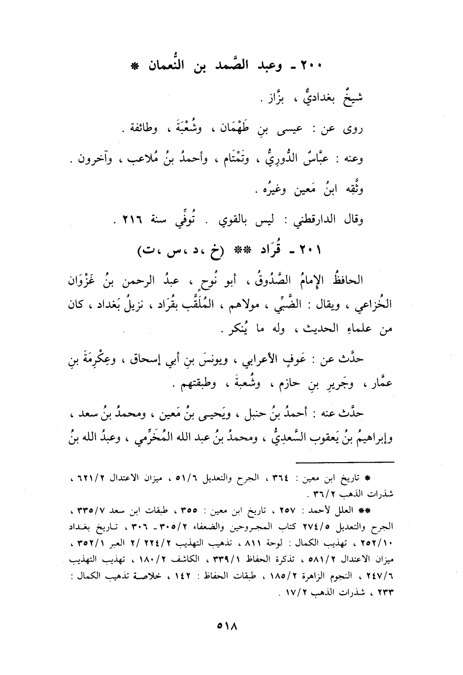 (*) تاريخ ابن معين: 364، الجرح والتعديل 6 / 51، ميزان الاعتدال 2 / 621، شذرات الذهب 2 / 36.