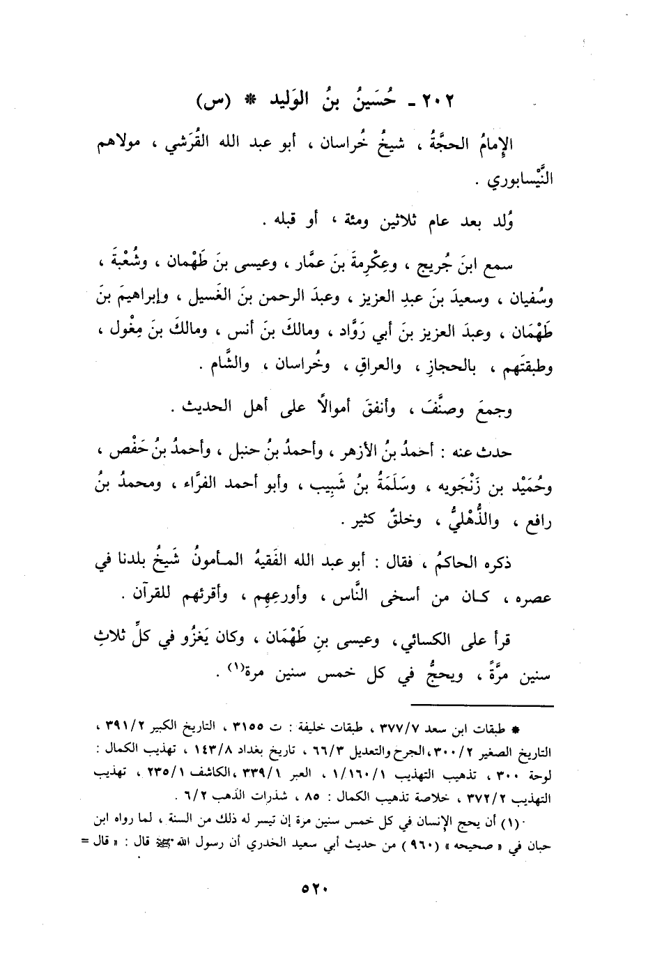 202 - حُسَيْنُ بنُ الوَلِيْدِ أَبُو عَبْدِ اللهِ القُرَشِيُّ * (س)