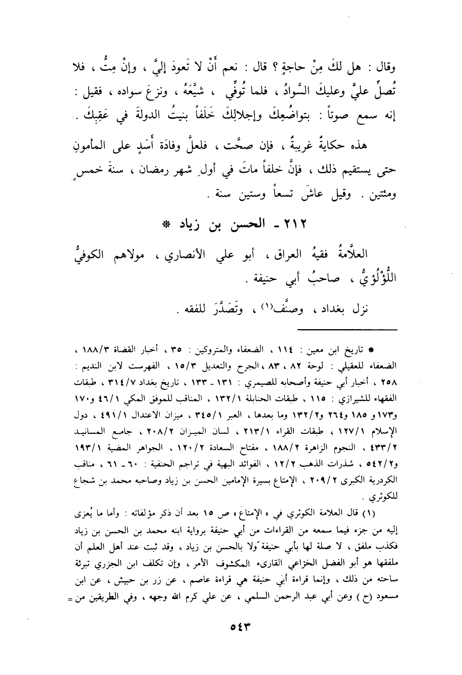 (*) تاريخ ابن معين: 114، الضعفاء والمتروكين: 35، أخبار القضاة 3 / 188، الضعفاء للعقيلي: لوحة 82، 83، الجرح والتعديل 3 / 15، الفهرست لابن النديم: 258، أخبار أبي حنيفة وأصحابه للصيمري: 131 - 133، تاريخ بغداد 7 / 314، طبقات الفقهاء للشيرازي: 115، طبقات الحنابلة 1 / 132، المناقب للموفق المكي 1 / 46 و170 و173 و185 و264 و2 / 132 وما بعدها، العبر 1 / 345، ميزان الاعتدال 1 / 491، دول الإسلام 1 / 127، طبقات القراء 1 / 213، لسان الميزان 2 / 208، جامع المسانيد 2 / 433، النجوم الزاهرة 2 / 188، مفتاح السعادة 1 / 120، الجواهر المضية 1 / 193 و2 / 542، شذرات الذهب 2 / 12، الفوائد البهية في تراجم الحنفية: 60 - 61، مناقب الكردرية الكبرى 2 / 209، الامتاع بسيرة الامامين الحسن بن زياد وصاحبه محمد بن شجاع للكوثري.