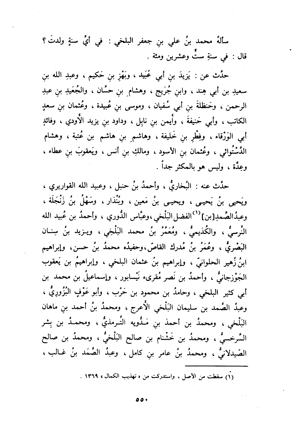 سَأَلَهُ مُحَمَّدُ بنُ عَلِيِّ بنِ جَعْفَرٍ البَلْخِيُّ: فِي أَيِّ سَنَةٍ وُلِدْتَ؟