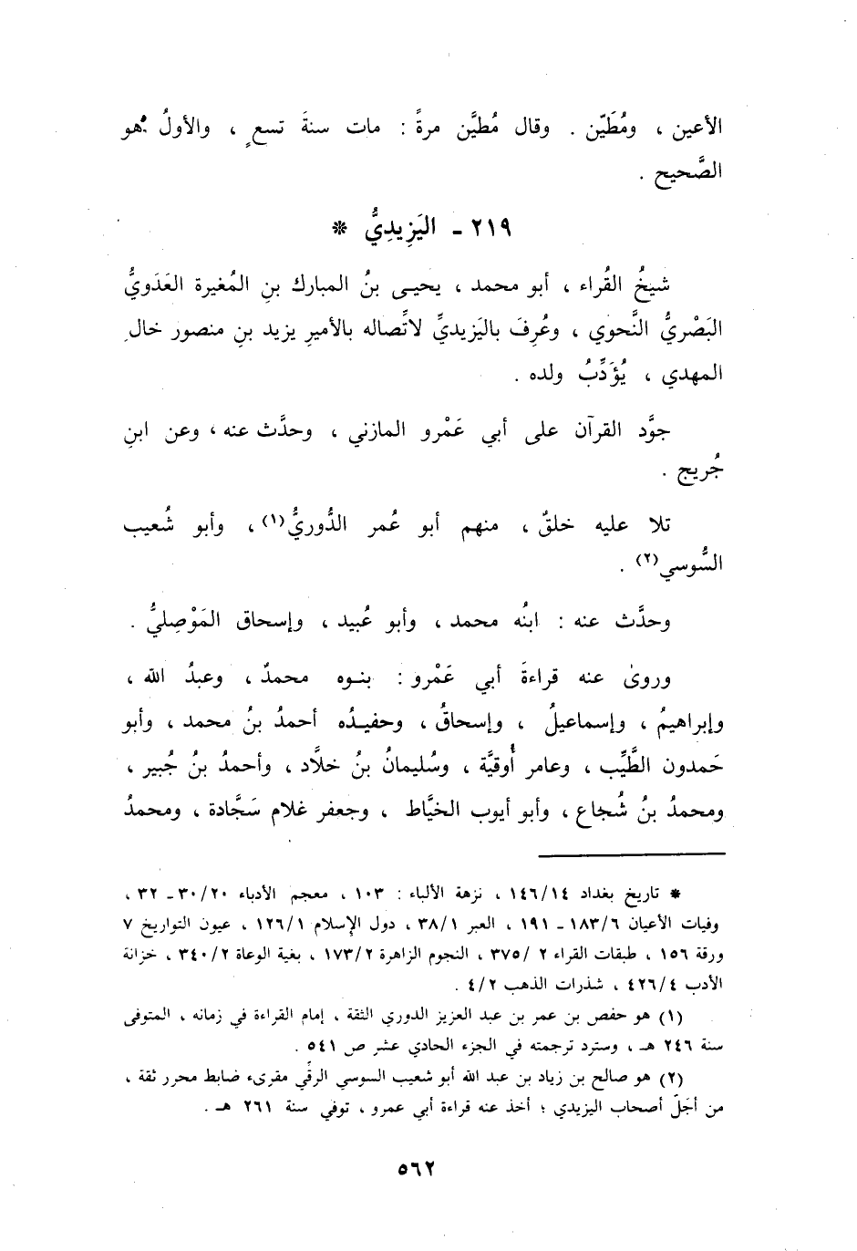 219 - اليَزِيْدِيُّ أَبُو مُحَمَّدٍ يَحْيَى بنُ المُبَارَكِ بنِ المُغِيْرَةِ *