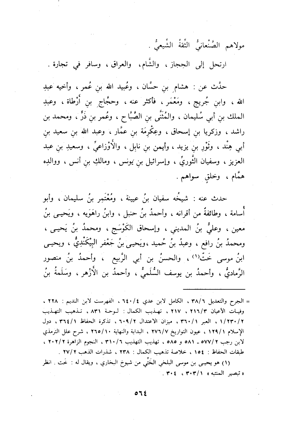 مَوْلاَهُمْ، الصَّنْعَانِيُّ، الثِّقَةُ، الشِّيْعِيُّ.