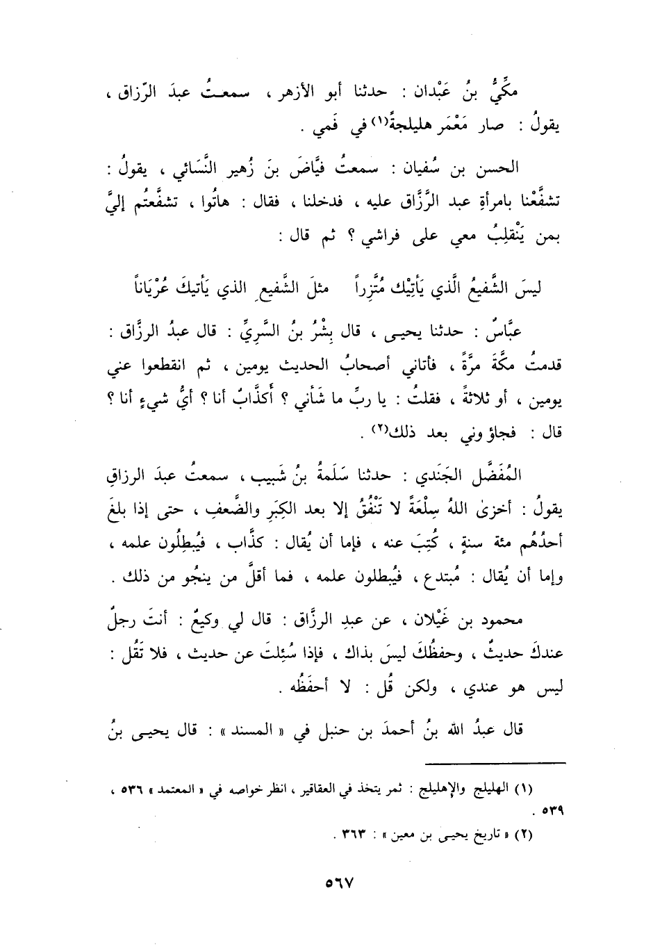 المُفَضَّلُ الجَنَدِيُّ: حَدَّثَنَا سَلَمَةُ بنُ شَبِيْبٍ، سَمِعْتُ عَبْدَ الرَّزَّاقِ يَقُوْلُ: