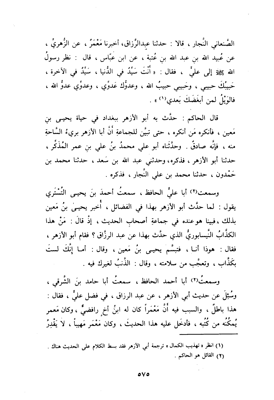 وَسَمِعْتُ (2) أَبَا أَحْمَدَ الحَافِظَ، سَمِعْتُ أَبَا حَامِدٍ بنَ الشَّرْقِيِّ، وَسُئِلَ عَنْ حَدِيْثِ أَبِي الأَزْهَرِ، عَنْ عَبْدِ الرَّزَّاقِ فِي فَضْلِ عَلِيٍّ، فَقَالَ: