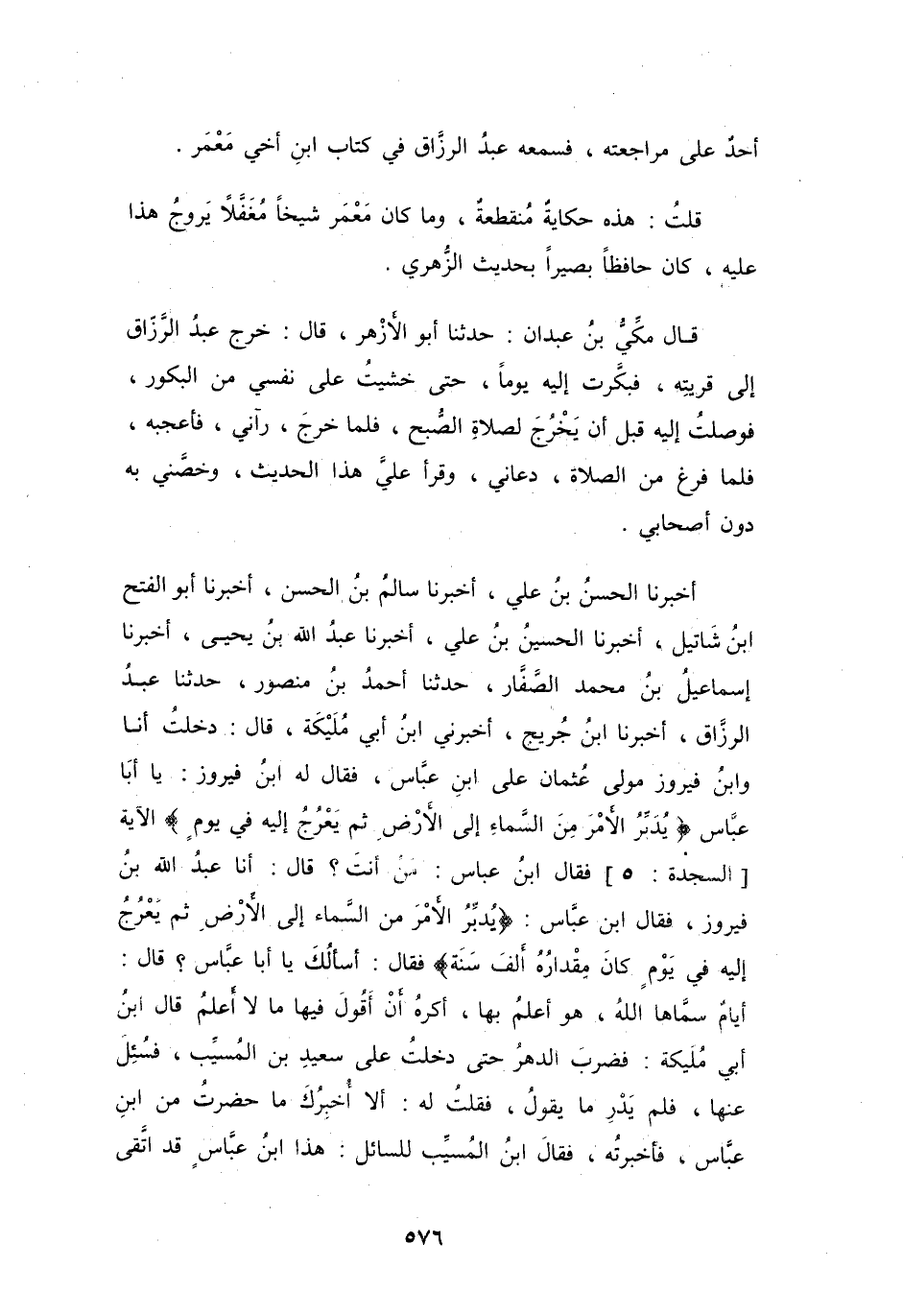 أَحَدٌ عَلَى مُرَاجَعَتِهِ، فَسَمِعَهُ عَبْدُ الرَّزَّاقِ فِي كِتَابِ ابْنِ أَخِي مَعْمَرٍ.