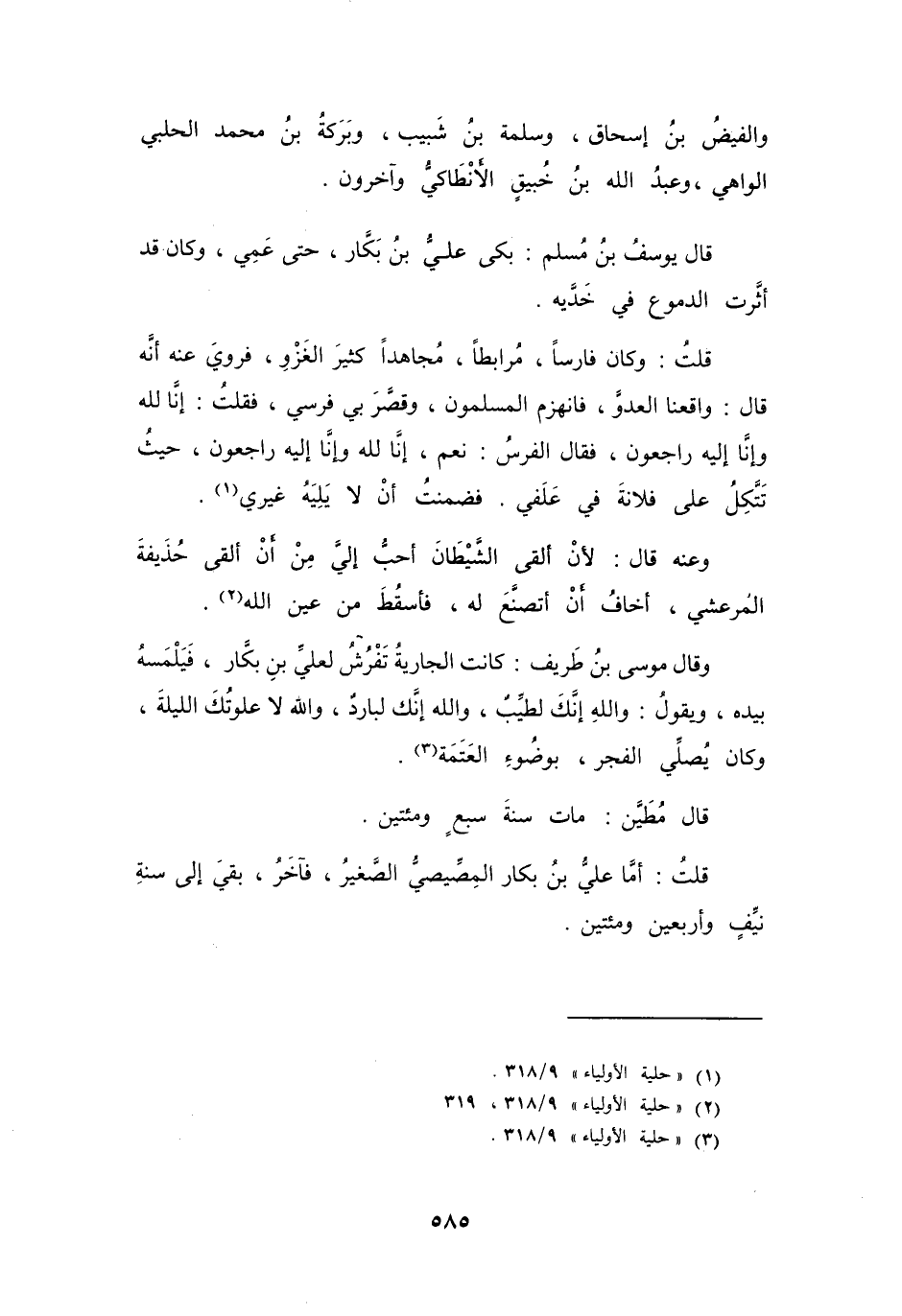 قُلْتُ: أَمَّا عَلِيُّ بنُ بَكَّارٍ المَصِّيْصِيُّ الصَّغِيْرُ: فَآخَرُ، بَقِيَ إِلَى سَنَةِ نَيِّفٍ وَأَرْبَعِيْنَ وَمائَتَيْنِ.