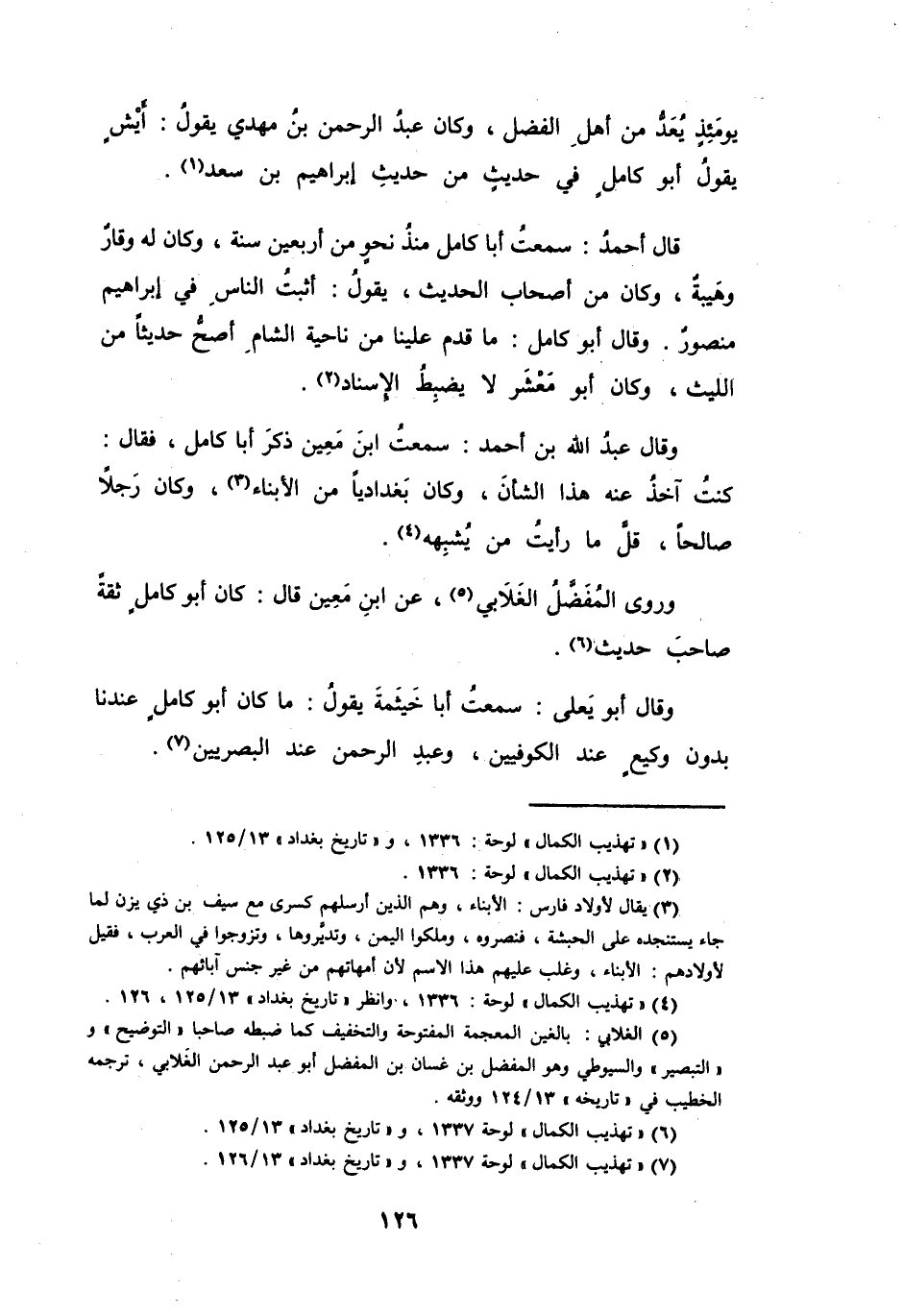 (7) " تهذيب الكمال " لوحة 1337، و" تاريخ بغداد " 13 / 126.