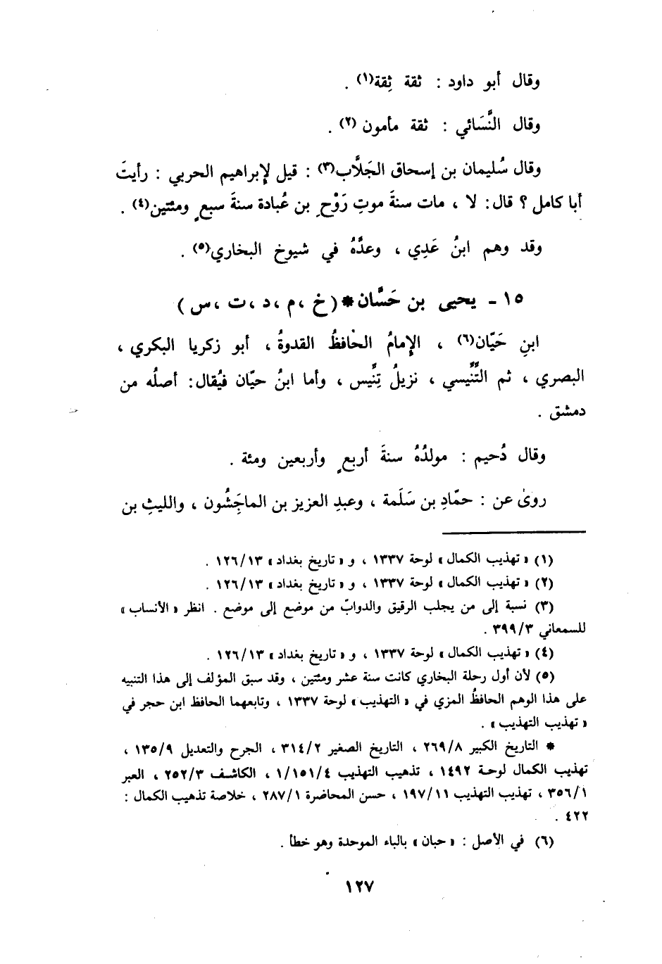 (1) " تهذيب الكمال " لوحة 1337، و" تاريخ بغداد " 13 / 126.