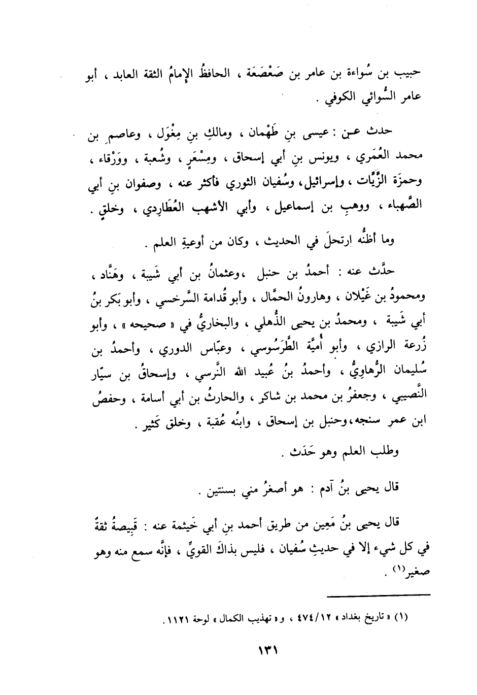 (1) " تاريخ بغداد " 12 / 474، و" تهذيب الكمال " لوحة 1121.