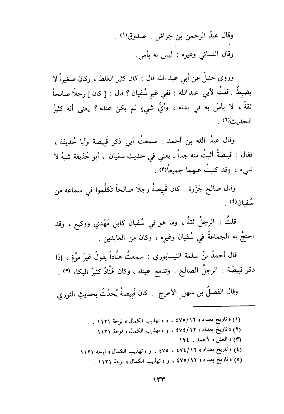 (5) " تاريخ بغداد " 12 / 475، و" تهذيب الكمال " لوحة 1121.