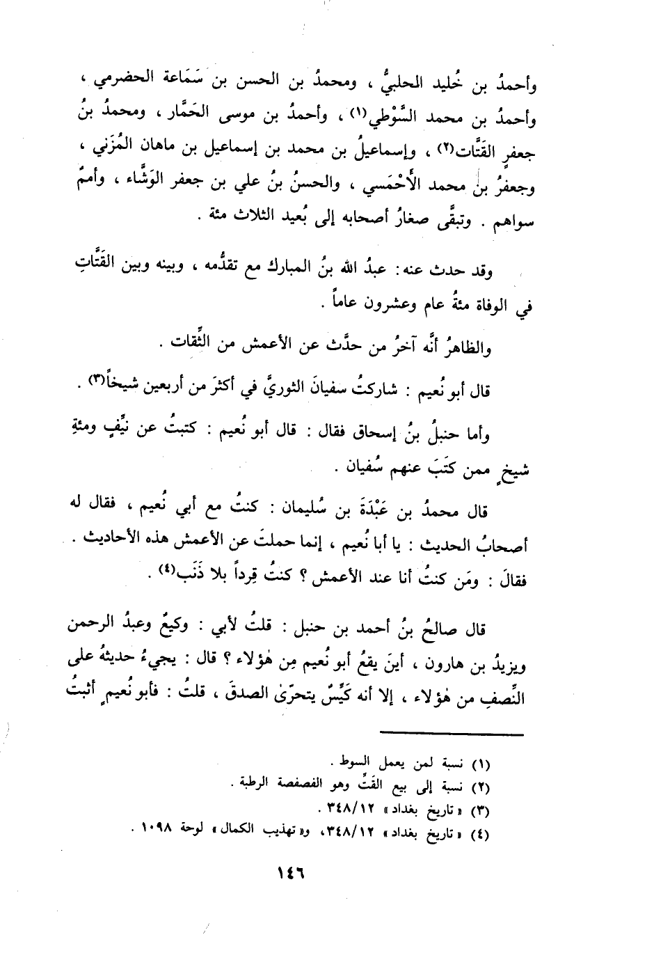 (4) " تاريخ بغداد " 12 / 348، و" تهذيب الكمال " لوحة 1098.