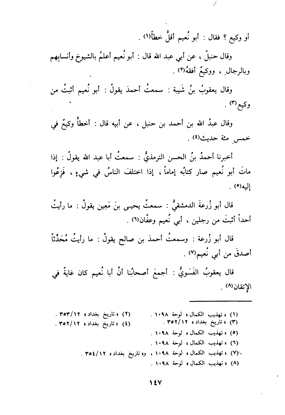 (7) " تهذيب الكمال " لوحة 1098، و" تاريخ بغداد " 12 / 354.
