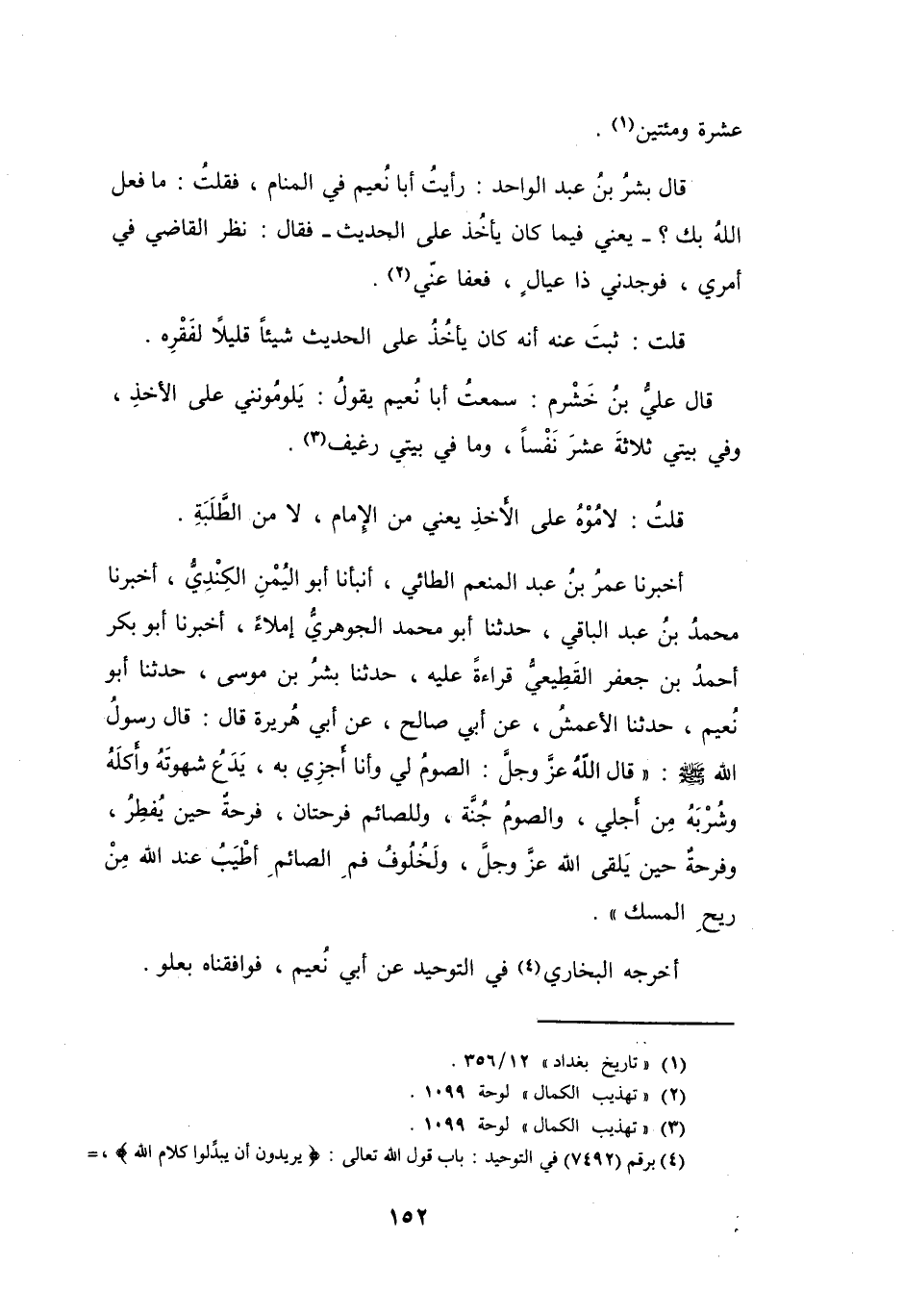 أَخْرَجَهُ البُخَارِيُّ (4) فِي التَّوْحِيْدِ، عَنْ أَبِي نُعَيْمٍ، فَوَافَقْنَاهُ بِعُلُوٍّ.