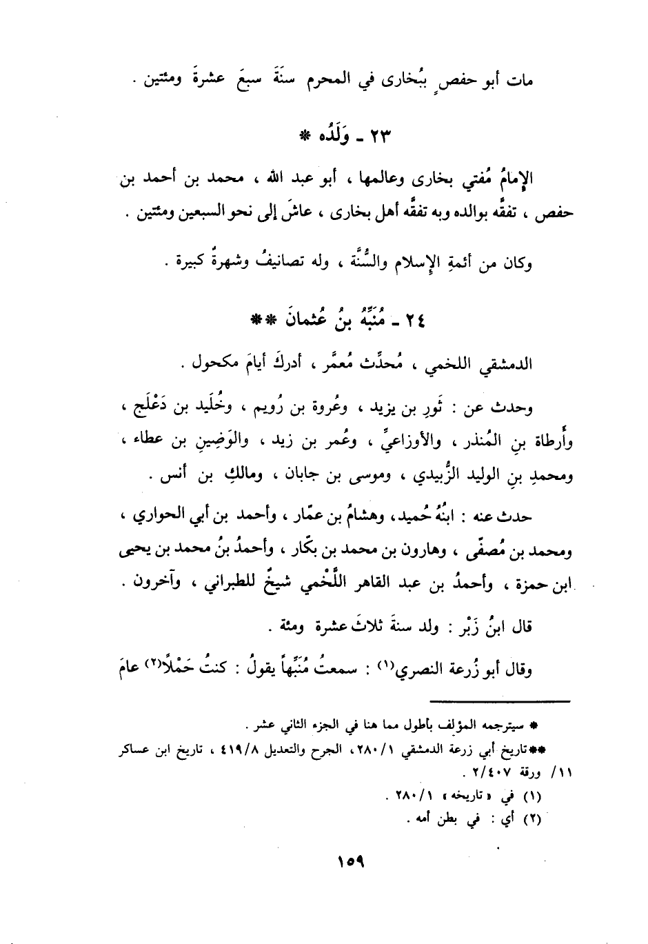(* *) تاريخ أبي زرعة الدمشقي 1 / 280، الجرح والتعديل 8 / 419، تاريخ ابن عساكر 11 / ورقة 407 / 2.